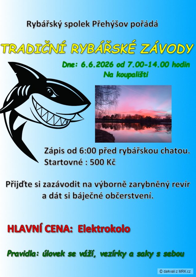 Dovolujeme si Vás pozvat na tradiční rybářské závody v Přehýšově.