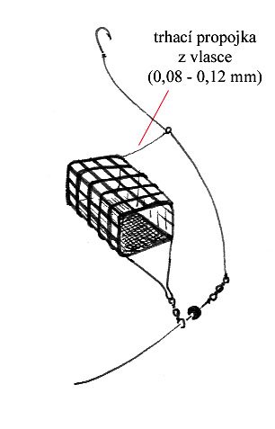 - Nástraha: tužší odolnější nástrahy (bílí červí, kukuřice,…) navlečené v obloučku ostrého háčku