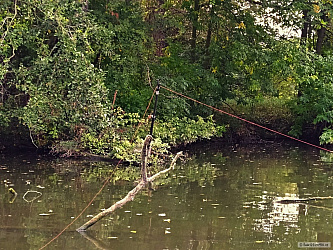 Následující den záběry nekončí a já vyhodnocuji, že oba pruty umístím do produktivnější přilehlé zátoky. Oblast je plná spadlých stromů, všemožných vázek a moje kotvička na vyproštění ryby z podobných problematických míst zůstala v autě. Nezbývá si poradit a kotvičku vyrobit na místě. Toto provizorium bylo naprosto klíčové, protože většina ryb si to namířila právě sem… >> Stránka diskuse