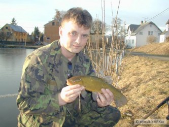 Kamošova první ryba v letošní sezoně.Z počátku dnešního lovu ryby byly přichuti,ale dlouho to nevydrželo.Celkem jsme z kamošem lapli 4 ryby.Jinak pěkné ztrávení u vody,počasí nám dopřávalo.Petru Zdar ať Vám berou.