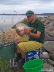 Vcera jsme meli s Gardon namireno trochu potrenovat na Dyji v Bulharech. Po prijezdu k vode jsme potkali kluky s br. jadra, kteri tam sedli uz od rana, a nedostali snad ani zaber.Tak jsme se otocoli na pate a zdrhli do Vestonic na "petku". Poradne jsme si nakrmili odhoz zhruba na 35 metrech, poradne zmerili hloubku a zacli lapat.Zpocatku jsme meli ale obrovsky problem s tahnutim vody. Tahlo to jak na rece, a ani se 4gr torpilou se to nedarilo udrzet na miste.Zhruba tak za hodinu se to ale uklidnilo a prestalo to tahnout a udelal se dokonalej olej.Ryby zacly brat na hod a byl to opravdu mazec. Chytali se opravdu velci cejni a kapri od35-48cm. Chtelo to jen poradne krmit a krmit.Jakmile nam na vecer doslo futro tak asi do pul hodky byly ryby pryc. Takze na konec moc krasna lapacka. Za 6 hodin jsme vytahli okolo 50 cejnu, a 31 kapru. Jediny minus byla zelena voda, a vecer kdyz jsme odjizdeli tak jsme byli zeleni jak vodnici:-)))