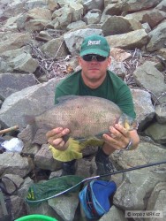 Tento kapr se povedl tátovi na naší týdenní rybářské výpravě na pískovně.Měřil 95cm a vážil rovných 18kg.Chycen na boilie Mrtvola, která nám letos až nečekaně/novinka/ dobře šlape.Ještě jedna gratulace..........