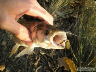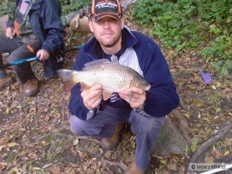 Dneska se lov na řece s Láďou Turbem a premiérově i s Bohoušem docela dost vydařil. Odpoledne jsme lapili dohromady sedm parem ( Láďa 5, Bohouš 2 a já zbytek ) a večer zobali jako o život kapří dorostenci okolo 30cm. Nakonec vše završil Láďa, který udolal tohodle buclatého kaproše na 0,12mm mimetix asi za dvacet minut, nedal mu to zadarmo. Chtěl jsem mu ho podebrat plavačkovým očkem a to se utrhlo i s objímkou, ale nakonec jsme kapříka šetrně vylovili. A to měl kaproš s bídou 5 kilo.