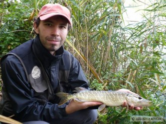 Byl jsem si zachytat okouny kterých je Svratka plná a při vedení nastrahy kolem břehu, kdY jsem přes polaryzační brýle sledoval mini okouna kterak se snaží slupnout bílého twistra se mi málem zastavil dech když po miniokyšovi vyjela paní zubatá.Minula! Následovala okamžité změna vlasce z 0,12 na 0,25 + lanko a na konec jsem zavěsil woblera RAPALA SHADOW RAP zbarvení okoun a čekal jestli bude paní zubatá ještě při chuti.Třetí náhou a tažení nastrahy kolem úkrytu, rána do prutu seknutí a jízda cca 25m, než jsem si uvědomil, co že se to vlastně děje.Výsledkem byla štika 76cm 3,5kg se zhojeným defektem oka.