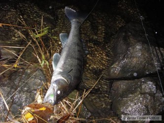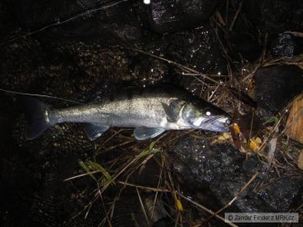 Včera počasí nic moc, ale skoro za tmy to vzala tahle krasavice. Jinak jen několik okounů kolem 25 cm. Fotka je z mobilu. Začínám mít pocit že chytám hlavně když nechám foťák doma :-))) Měla rovných 70 a woba 15 cm slupla celého