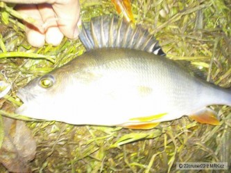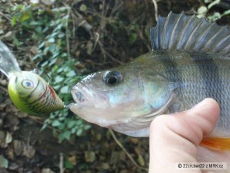 Po škole sme s otcom vybehli na hodinku a pol na rieku, s počiatku nič moc. Potom prišiel menší jalček na tmavú s čiernymi flitrami, a prekvapko nakoniec v podobe ostrieža 32cm na oranžovú power bait nymf od berkleyho...