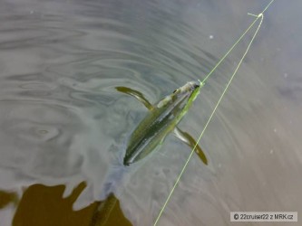 Byly jsme s tátou znovu na našm velmi oblíbeném revíru. Jako vždy jsem tam vláčel a celkem to šlo. z rána mezi pátou až půl sedmou hodinou šli okouni od 20cm-32cm. Potom přišla chvíle (asi od sedme do desíti dopoledne) kdy ryby přestaly na můj aromatický bilý twister od firmy Berkley úplně reagovat, tak jsem se bavil na feeder a plavanou malími kapříky, karasi a okouni. Potom jsem prohodil zasé mé úspěšné fleky a najednou jsem dostal na twistra ohromný záběr. Vím moc dobře, že zde jsou velké štiky už jsem dvě za dobu co chodím na ´Oborák´ dostal (65 cm-podzim 2008 A 100 cm-březen 2009), ale tahle byla daleko silnější, ale měl jsem jen ´osmnáctku´ vlasec, takže mi to zubatice během minuty urvala. Dostal jsem od ní záběr, ještě třikrát, ale ten třetí to byl teprve boj. Měl jsem v jednom z koutů rybníka krásný záběr. Jemně jsem přisekl a cítil jsem, že je na prutě zase ta velká zubatice. Už 10 minut jsem s ní držel krok a docela solidně ji unavil, když už jsem chystal podběrák, všiml jsem si jak mám na doraz utaženou brzdu, tak jsem ji začal povolovat, jenže dravec spozornil, že vlasec není našponovaný nabral poslední síly a vypnul se. Málem jsemse rozbrečel, protože už byla tak blízko štika 120cm- 125cm.Rozveselil mě však fakt, že jsem toho dne ulovil cca. 60 okounů v rozměrech od 15cm - 35cm. Všechny ulovené ryby byly vráceny vodě !!! Petrův Zdar Krasoň
