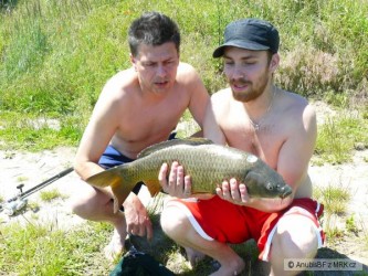PROKLETÁ VÝPRAVA. Měli sme se Statkem naplánovanou výpravu na Orlík, chtěli sme ho krapet zmapovat a zachytat. V den odjezdu mi bylo špatně, tak sme ho museli o den odložit. Vyrazili sme na místo, které se mi líbilo na satelitních snímcích, snosili věci asi 500m krpálem což nám zabralo tři hodiny. Vyjeli na vodu a zjistili, že je tam hloubka 30m. Nechtělo se nám nosit rovnou věci zase do kopce tak sme si dva dny oddáchli, nic nechytli a vynosili vše zase nahoru, ale tentokrát nám to trvalo s přestávkama 5 hodin. Hurá na jiné místo. Přijeli sme jinam tam se nedalo dostat k vodě a prorazil sem vanu u oktávky, kterou mam tři tejdny. Tak sme strávili krásnou noc a den čekáním na odtahovku uprostřed pole. Po příjezdu domu sem se umyl vyspal jednu noc doma a vyrazili favoritem na pískovnu, kde sem ještě moderně nekaprařil. Tam sme si trobet spravili náladu chytli sme pár kaprů největšího já 81 a 10,9 kg. Aby toho prokletí nebylo málo tak nejlépe vypadající dva kapři mi zajeli do vázky a přervali mi o ní jeden návazec a druhej olověnku. Přijel za náma i Kuba a taky si kapra chytil.