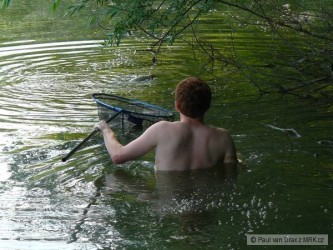 Ranní posezení u vody - napřed jsem se smál kamarádovi, kterému v nestřeženém okamžiku odjel prut na druhou stranu vody, a za chvíli jsem musel taky do trenek, protože se mi zamotal kapřík do větví. Ale co, celkem tři ryby násadové velikosti a voda už je taky krásně teplá:)