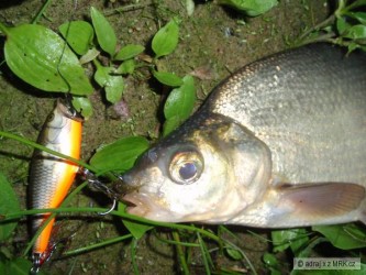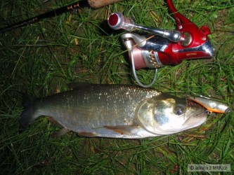Včera jsem se zůčastnil výpravy, jejímž cílem bylo zmapovat nová místa na rybolov, náš průvodce nás nejprve vedl po pěkné cestě kolem řeky, která posléze přešla v močál a po chvíli v jungli, pěkných míst na chytání jsme viděli spoustu, až nakonec jsme se usadili na jednom které vypadalo velice slibně a výsledek ? Kolega Mitchell zero, já pěkný skaláky ke 40cm a menší cejny a jednu zaručeně lidožravou sumatru :-)) náš průvodce se ukázal jako pán domácí a zdolal 2 karpfeny a 2 sumáry a nějakýho cejna. Celkově jsem byl spokojen, až na to že dvě hodiny nad náma byla bouřka a bágl suším ještě ted'. Nej nástraha rousnice a za ní mrtvá rybka.