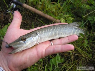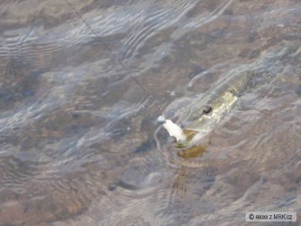 Dnes vláčka v pravé poledne a rozhodně zatím letos nejpovedenější ...... házel jsem proti větru, na hladině půlmetrové vlny, podél břehu byl tak 2m zakalený pás vody a v tom byl základ úspěchu :-) ..... Po několika náhozech mi to ukousla štička, hned jsem dal wolfram a během lovu jsem chytil 5 kudel do 50 cm, na jednom místě v zátoce několik okounů i přes 30cm ( za zdolávaným pruhatcem hejno i mnohem větších připlavalo až ke břehu ) a na 2" banjo jsem si ve vlnách vychutnal parádní souboj s bolenem 61 cm, což není velikán, ale na štěrkáči potěšil ...... jo a lanko bolenům nevadí :-)