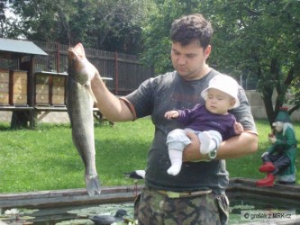 Kdyz uz jsem se rano vzbudil diky horku brzo, tak jsem na ty fisky vyrazil, vecer predtim jsem si tam 5 velkych ryb povodil, tak jsem doufal, ze neco prijde a prislo. Nejprve candat 50, pak asi 5kg kapr lysec za ocas, ale i sumika jsem se dockal, bylo to fajn.