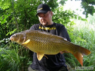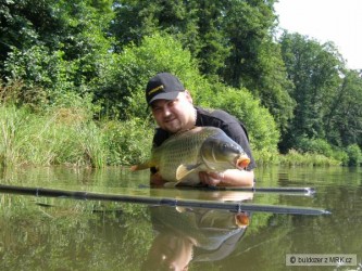 Po prichodu to 4 hodiny neudelalo vubec nic, ani pohyb, ani se ryby neukazovaly. Tak jsem vzal kybl a prak a zacal jsem tam v pomalem tempu strilet kulicky krmeni jak pulka svestky, proste aby tam furt neco padalo a proklesavajici potrava upoutala pozornost ryb. Strilel jsem 2 hodiny bez prestavky a ... zlomil jsem prokleti :-) Ne ze by to pak byla palba zaberu za zaberem, ale na tu bidu to slo. Kapri kolem 48-52cm, cejni 50-60cm. Bralo to jen na feeder, druhy prut na kapry stale mrtvo.