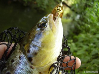 Dnes jsem nachytal pár mini potočáků a duháčka,odměnou za delší cestu mi byl potočák 33cm,bojoval jak tygrrr.Radost mi zmírnila ztráta dvou rotaček a zapomenutý foťák.To foto je odtamtud,ale starší.