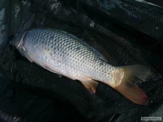 Docela to šlo až na počasí. Kapříci kousali spolehlivě, velikostně sice nic moc z řady podmíráků zlehka vybočil jen tento - 42 cm. Chytáno na odhoz, nej nástraha kuku. Jinak jsem taky solidně zmoknul a to rovnou několikrát, ale vzhledem k tomu, žej sem byl na rybách po několikatýdenním půstu, tak mě to zas až tak moc nevadilo :-)