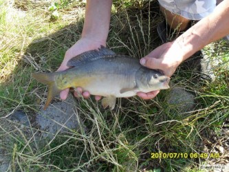Trochu jsem si přivstal a provětral plavačkovou děličku na řece.Ovšem ryby nějak odmítaly spolupráci.Trocha drobotě,jeden cejn 50cm a ostroretka o chloupek menší.Před desátou raní mě vyhnalo vedro.