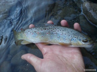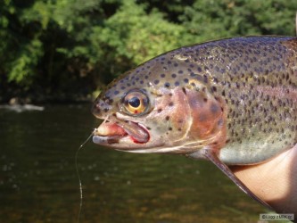 Týden na chatě přinesl krásné pstruhy, jak potoční tak i duháky. Jeden z plánovaných posledních hodů před odjezdem, myslel jsem že mam vázku, ale byl z toho tenhle životní duhák cca 50cm. Když jsem se pro něj schýbal, spadl mi do vody mobil, stačil jsem ještě tohle i když už stěží vyfotit, jak je vidět a už se vypl. Naštěstí po vysušení šlape OK. Jinak duhák chycen na rapalku 2cm.