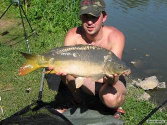Tak dneska u vody asi na 10 hodin lovu a dva slušní kapříci se povedli. jeden na směs I.M.O.T.H.E.P. Baits losos + T.E.P. komplex uzený losos a druhý na směs I.M.O.T.H.E.P. Baits semínko + esence mušle a brusinka, ráno mě trochu zlobili komáři a nesnesitelný vedro celej den....sice trošičku zapršelo, ale na osvěžení vzduchu to je málo :(