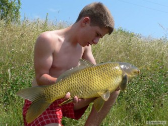 včera 14.7. kapr 56cm 4,20 kg,nástraha pařený rohlík vlasec DRAGON