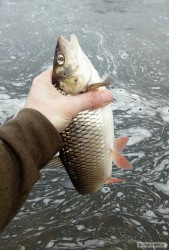 Dnes při cestě z práce jsem se zastavil pro mě na neznámém revíru že to zkusím pod jezem kde se nic nekonalo.Tak jsem popošel kus nad jez a zde se povedli celkem 3ks velikostně nic moc ale v únoru se počítá každá šupina :D