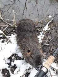 Do rána pěkně nasněžilo, přesto jsem to šel zkusit a zahájit....nasadil jsem Centrepina, dikobrazí brčko a hurá k vodě...pár rybek se povedlo,ale největší hlad měla nutrie,která mi skoro vlezla do tašky....