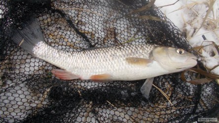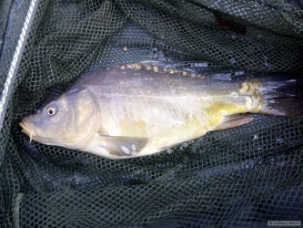 Dnešní 2hodinovka,vymrzl sem,ustřelil anténku splávku a před absolutním fiaskem mě zachránil jeden vymodlený tlouštík.Příště to chce jinou nástrahu,rohlíček by bodl...