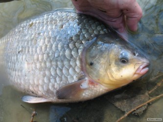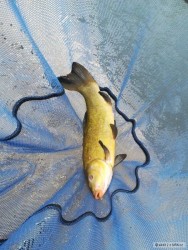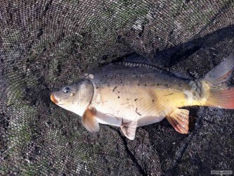 Dnešní pokus na plavačku o lína na silně zarostené vodě sice nevyšel,zato se podařilo několik pěkných ryb včetně dvou osobáků,karas 45 a s velikým štěstím kapr 87