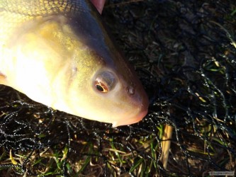 Dneska to kousalo parádně...ryby se už vyvalujou na mělčinách a užívaj si slunce....jeden z několika dablů na methodfeeder....nástraha 6mm peletka robin red + plovoucí kuku