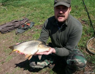 Podařilo se mi nakonec udělat 4 záběry, z toho 3 kapříci se podívali na podložku, toho letošního prvního a nejhezčího přikládám.