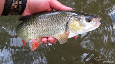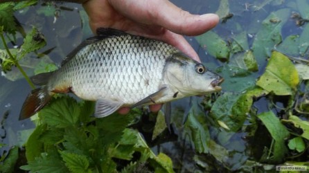 Víkend s fajn partou přátel na chatě a nečekanou rybou. Ani jsem do toho potoka (vyschlá přehrada) nechtěl nahazovat, ale vyplatilo se. Na fotku se propašoval i barevný pasažér. :-D