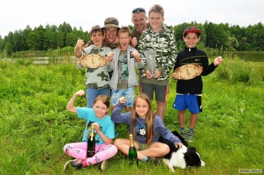 Tradiční akce na tradičním místě a tradičně všechno úplně v pohodě, i když to bylo trochu hektické. V pátek byl mezinárodní den dětí, proto jsme pro naše ratolesti, a že jich tu letos bylo, uspořádali soutěže - na každém fleku jednu. Asi největší úspěch měl lov čudel na klacek a střelba vzduchovkou do plechovky. Na závěr jsme děti odměnili medailemi a zapili to dětským šampaňským. Fakt mám velkou radost, s jakým nadšením děcka plnily své úkoly a také, jak spolupracovaly na samotném rybolovu. Náš tým se od začátku motal kolem bedny, v sobotu jsem se 3 slušnými amury dostali do vedení, a to až do konce udrželi, i když to až tak jednoznačné nebylo. Do dalšího ročnímu máme v užívání putovní pohár a to se prostě cení!