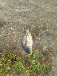 Na řece zbyly snad už jen oukleje a pár mini plotiček. Řeka je po loňské otravě marná. Za tři dny se větší ryba nikde ani neukázala.