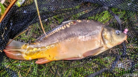 Letos již po druhé jsem se vydal na oblíbenou svazovou pískovnu, kde v tomto období dosahují řasy až k hladině a na některých místech začíná lov být nemožný. Počasí se zdálo pro ryby ideální a zprávy od kolegy zněli pozitivně. K vodě se mi podařilo dostat již před víkendem a první záběry na sebe nenechaly dlouho čekat. Krmné místa na hraně v 6 m jsem začal zprvu krmit i partiklem, ale následně pouze větším množstvím boilies. Teď už stačilo doufat, že mezi menšími kapry přijde ten správný a hlavně jestli s nadcházejím víkendem záběry neustanou. Jako nástrahu jsem použil kuličku 25 mm spolu s pop up od doplněné o PVA punčochu s peletami. V podstatě každý den se povedlo zdolat nejméně jednu pěknou rybu, ale jak už to tak bývá v sobotu po příjezdu dalších rybářů kapří aktivita opadla. Nicméně výpravu jsem si užil a nezbývá než plánovat další.