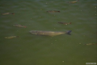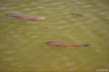 Pokus na angličan ulovit větší rybu se nezdařil sem tam plotička a perlínek, tak jsem se aspoň pokochal místními v podstatě neulovitelnými amury, jež jsou zde za celebrity a atrakcí, chvíle mi to vypadalo jako by se tu zatřělovaly ponorky :-)