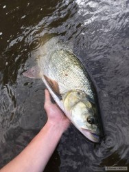 Potichounku jsem se přikradl k vodě a nahodil šoulačkový proutek na první pěknější rybu co jsem viděl... Nához se však nepovedl a já chtěl nástrahu rychle stáhnout a nahodit znovu. Nooo, nestihl jsem ani potočit kličkou a jeba jak prase. V říčce vypukl zmatek . Bahno se vířilo a voda stříkala na všechny strany. Naše malá cácorka se zaujetím pozorovala tátu,jak s ohnutým prutem bojuje s velkou rybou. Soupeř se nedal lacino,ale jeho síly nebyly nekonečné. ,,Jééééé!" Špitla malá,když se táta vyštrachal z kopřiv s bolenem v ruce. Holky s obdivem prohlížely stříbrného bojovníka. Měl jsem z toho společného zážitku opravdovou radost. Bonusem byla má nepošramocená pověst. :)