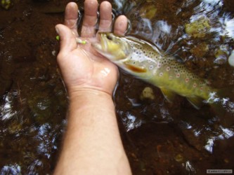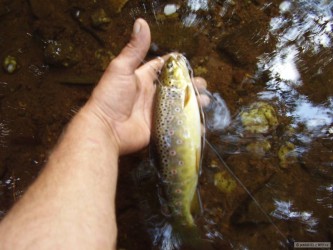 Na rekreaci v Jeseníkách se mi podařilo jet si párkrát zamuškařit. Kvůli velkým horkům byl nejlepší čas od pozdního odpoledne až do večera. Šli duháci a siveni na krátkou nymfu. Chyceno cca 25 salmonidů, 3 exempláře jsem vzal. Docela pěkný muškařský den až na to, že jsem tu potkal pár rybářů, kteří to tu "kosili" bez ohledu na dodržení maximálního povoleného počtu ryb. Bohužel rybářská stráž je tu vždy většinou v nedohlednu.