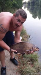 Včerejší večerní čekání na sumce,který se však nezúčastnil,zpestřil feeder tenhle cejní důchodce a poté co mi řádně pomstichtivě osliznul podběrák,metl zpět do přehřátého potoka jménem Svratka...Lovu zdar ze Štatlu!