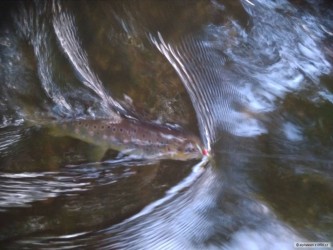 Hodinka na pstruhovce,2 duhaci spadli, pár menších potocaku se podívalo nad hladinu.Vody málo cca 3/4 m pod normál, potřebujeme déšť.