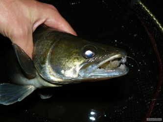 V půlce léta se mi podařilo vyčenichat místo, kde candáti pořádají pravidelné podvečerní hostiny. Celá akce začíná vždy kolem deváté hodiny a před desátou už je zase ticho po pěšině. Za pět vycházek se tam na mě podívalo pěkných pár psích zubů a korunoval to padesátník tloušť.