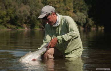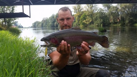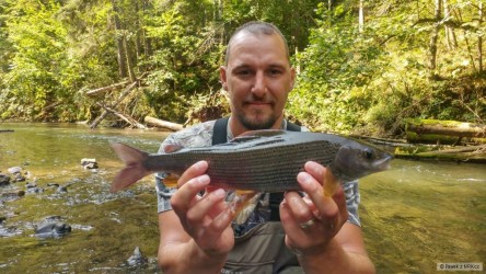 Horúce prvo Septembrové dní sme strávili spolu s rybárskym kolegom Patríkom na miestach, kde široko ďaleko nieje počuť žiaden hluk aut, vrieskajúcich ľudí na plážiach a podobne. Proste pobyt v totálnej divočine. Ani rybám sa tiež veľmi nechcelo v tomto dusnom a jasnom počasí. Občas z rána bola aktivita či už Boleňov, Jalcov a podaril sa aj krajší riečny Kapor, ktorému zachutilo osem centimetrové gumené kopýtko. Pár minút v ťažko prístupnom teréne trvalo, kým som ho zdolal do člnu. Nakoniec si zato zaslúžil slobodu. Miestami bolo v rieke tak málo vody, že sme miestami ťahali čln proti prúdu brodením. Ale celkovo fajn príjemný víkend. Už sa tam znovu tešíme, len bude fajn, ak sa konečne viac ochladí aj cez deň, voda trošku sa dvihne a možno začnú brať už aj Zubáče, ktoré tento krát s nami vôbec nespolupracovali. Petrov Zdar!