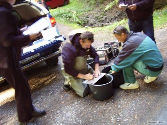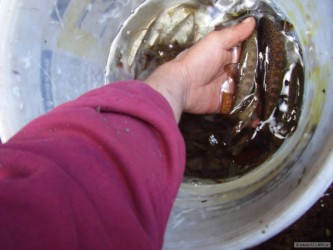 O víkendu přišel čas na vyhodnocení celoroční práce a různých experimentů.Z pátku na sobotu jsem moc nenaspal,pořád mě běželo hlavou,jestli jsem se v něčem nespletl a jestli postup,který jsem zvolil je správný.Hned začátek byl výborný.Nad a pod vybudovanými prahy bylo neskutečné množství letošních pstroužků za samovýtěru.Do toho přijeli z KRNAPU s vědátory odebírat vzorky PO na genetiku,bylo to v úseku nad neprostupným splavem nad vodárnou,kde se snažíme o obnovení populace.Byli velice překvapeni množstvím PO v celém věkovém rozsahu.Nějaký PO z míst,kde jich bylo až moc jsme odebrali na vysazení pro další chov na g. PO.Petrův Zdar