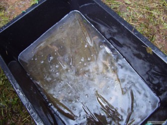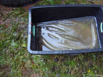 Dnešní výlov chovného rybníka.Dravcům svědčí,občas pokácet stromek do vody.Nějaký okoun se taky našel a štik se letos urodilo hodně.Petrův Zdar