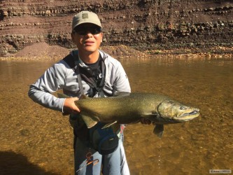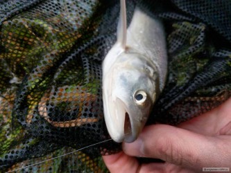 Dnes to neslo podla ocakavania stratil som 2 ryby a domaci borec s centrepinom daval rybu za rybou. Sice vacsinou za plutvy a za hlavu, ale bolo zaujimave vidiet ryby letiet hore plytkou vodou a rybara utekat za nimi. Jedna ryba sa rozbehla dole vodou a omylom skoncila asi meter na brehu ked chcela plavat dole prudom a zvolila zly smer. Udrzat jednou rukou 6 kiloveho lososa za chvost je nemozne ak nieje mrtvy.