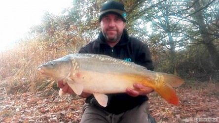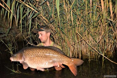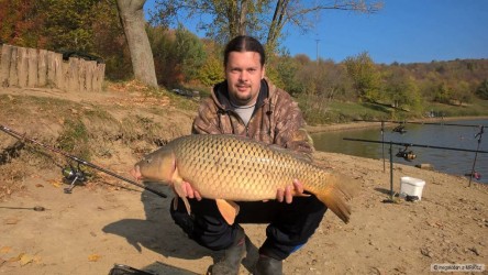 Třetí ryba 15,10 kg zabrala poslední noc a přesto, že byla nejmenší tak mi dala nejvíce zabrat. Po záběru jsem dojel na místo a zjistil, že si to ryba opět namířila do stromů a celý ho prokličkovala. Když jsem po půl hodině kotvičkování tvrdě zasekl trojhák kdesi v hlubinách do stromu, měl jsem chuť to otočit a jet zpátky. Uvědomil jsem si však, že je ve člunu ještě druhá kotvička od kolegy. Svou uvězněnou jsem domotal a odložil na čouhající strom. Následně jsem ukousnul kmenový vlasec z prutu, omotal konec kolem pařezu a začal objíždět potopený strom ve větších kruzích s kolegovou kotvičkou. Po hodině jsem zvedl ze dna černé technium – Bingo! zaradoval jsem se. Raba vyjela ze stromu ve směru, který jsem předpokládal nejméně. Kapr si to namířil k ostrovu z rákosí. Nakonec jsem po šokové padesátce doručkoval až na konec a spatřil uvězněného kapra. Ten byl uvázaný na krátko u kořenů rákosí. Kapra jsem jen podebral a vítězně jel ke břehu.