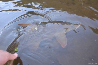 Dnes nic moc počasí, tak se podělím....V pondělí jsem měl nutkání vyrazit před deštěm k vodě...v půl třetí byly oba feedry v řece...za hodinu se rozjel pravý prut a na konci se ukázal nádherně vybarvenej lysec 57+ okolo 4 kg..Zželelo se mi ho a do udírny se mnou nejel. Pak došel jeden ani ne snad násaďák, a když už to vypadalo na konec rybačky, rozjel se mi druhý prut. Na něm se koupaly 2 medovky a jedna 8mm plovka. Hned bylo jasný, že to není malá ryba. Po 15ti minutách se objevila u břehu, pak v podběráku a starý metr vedle těla ukázal na 79 a fous i když měla upálenej ocas....škoda, že tam se mnou seděl jen pes. Osobák na feeder posunut ! :o) Díky řeko...