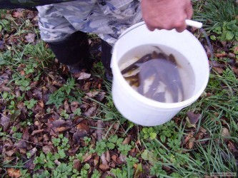 šel jsem kouknout ještě nahoru jak je to stím třením v toku tam a opravdu zdá se mi že letos je to v toku nějak silnější, asi je to podzimním nížším stavem vody a tak do se jim mnohdy do hůře přístupných potoků moc nechce. Při tom jsem stihl zachytat v táhlinách tlouště a nějakého i odnést.