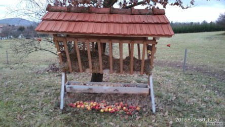Dneska kontrola přítoku do mého rybníčka, zároveň u rybníčka založen náš krmelec jablíčky a tvrdým chlebem.