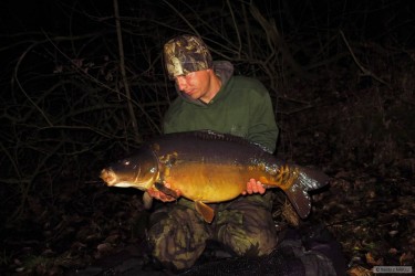 Při dvoudenním zakončení sezóny se mi podařilo přelstít sedum kaprů. Jednoho krasavce jsem si musel alespoň změřit (96cm) Místo dva dny po vánocích předkrmeno 2kg 20mm boilie. Při samotném lovu už jen hrst po záběru.
