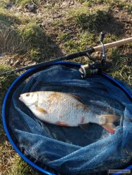 Dnes jsem po obědě poprvé vyrazil na ryby v plné zbroji, ale návštěva vytipované vody nevyšla, protože byla ještě z větší části zamrzlá..naštěstí jsem měl náhradní plán a přejel jsem na menší rybník, kde jsem si rozkrmil pěknej flek s dobrou hloubkou a na brka s matchovkama jsem si nakonec pěkně zachytal..na břeh se podívalo několik kapříků a jednoho padíka si dám konečně k obídku...dost foukalo, ale i tak bylo fajn..:)