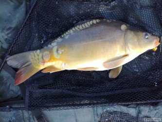 Konečně jsem se taky dočkal prvního kapříka na oblíbeném revíru.Po dvanácti vycházkách bez jediného pípnutí se mi ráno po práci v teplotě 3 °C vůbec k vodě nechtělo,ale nakonec jsem se překonal a vyrazil jsem.Po 10 minutách lovu jsem chytil krásného lína 35 cm na plovku a na druhý prut se po 30 minutách na zig rig přišel podívat tento šupík ještě v zimních barvách.